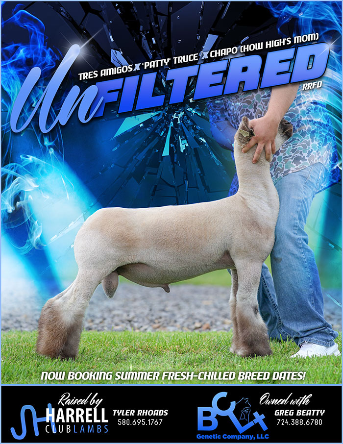 Purchased from Jeff Friest from Iowa in 2010, ¾ sibling to the 2010 Oklahoma State Fair Grand Champion Market Lamb.